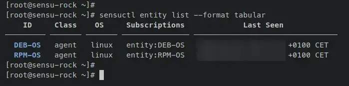 接下来,运行下面的命令来修改'RPM-OS'和'DEB-OS'实体。实体类别应该是'agent',然后添加订阅'system'。输出'Update'确认实体被修改。